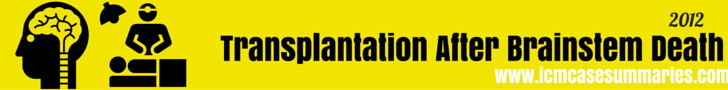 By day 5 he was making spontaneous respiratory effort, and his pupils were equal and sluggishly reactive. His GCS remained 3/15. A repeat CT was performed on day 9 due to no improvement in his clinical condition and revealed extension of the intraparenchymal haemorrhage with 8mm midline shift, effacement of the ventricles and loss of sulcal definition. A discussion regarding end of life care was held with his family who raised the possibility of organ donation. In agreement with his family, end of life care was instituted and he became an organ donor after circulatory death was confirmed.